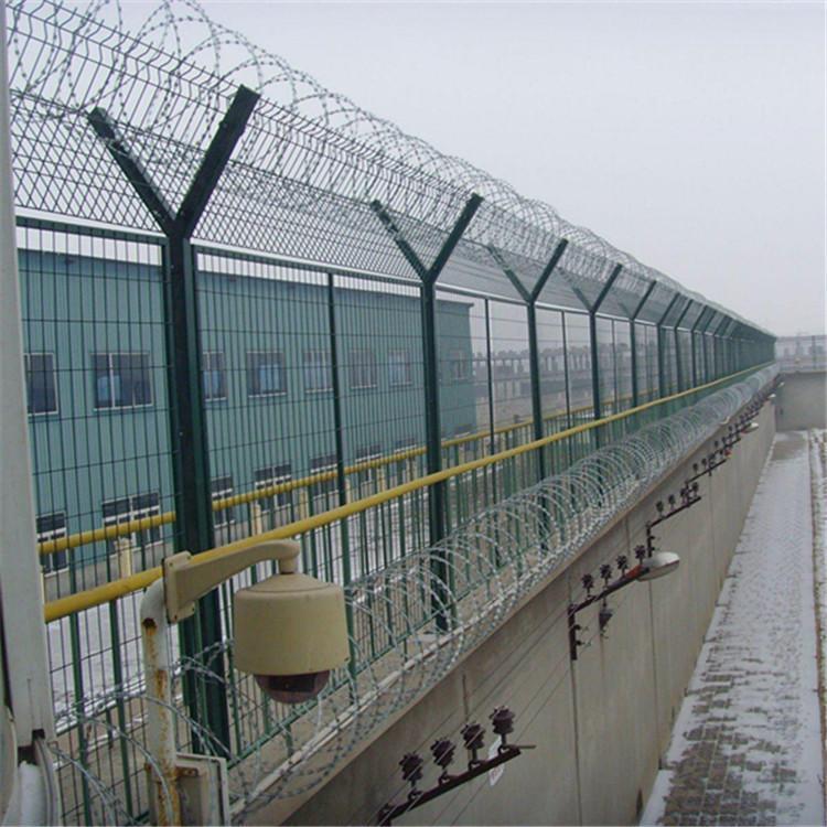 監(jiān)獄圍欄網(wǎng)也稱為監(jiān)獄圍擋或監(jiān)獄隔離欄,它是高強度剃刀鐵絲網(wǎng)和普通防護網(wǎng)的組合。刺刀網(wǎng)是一種新型的防護網(wǎng),它由鋒利的鍍鋅鋼板或不銹鋼薄板作為葉片,而鋼絲則作為芯線,可以有效的防止人為翻越欄桿的行為。