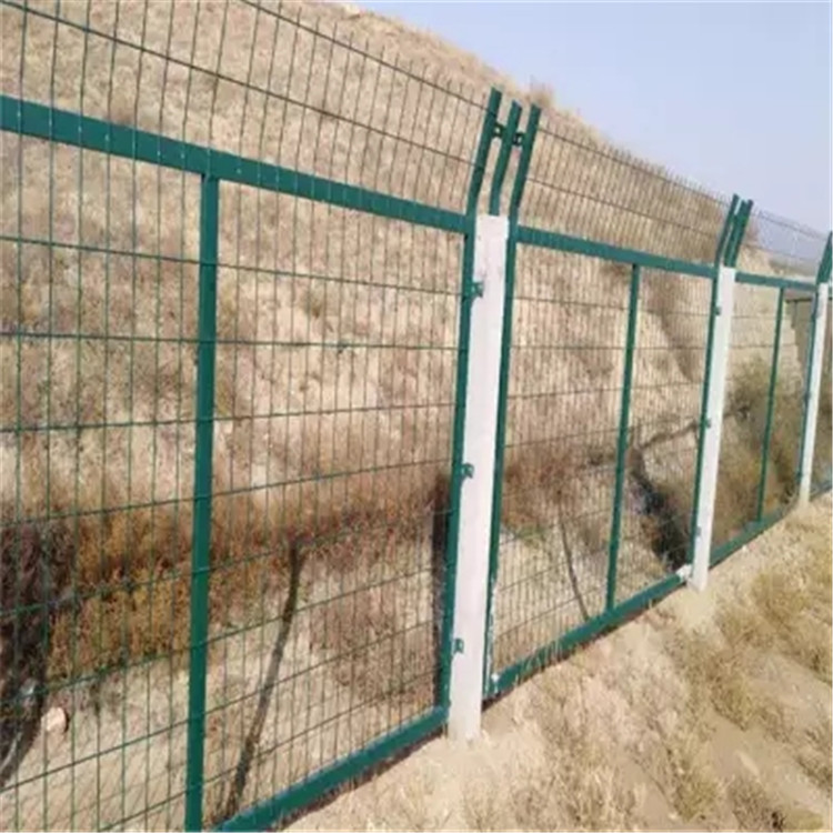 鐵路防護柵欄是專業用于鐵路兩側的護欄網產品,具有耐用、美觀、視野開闊的特點,并且具有較好的防護性能。整個網體采用立柱采用混凝土澆筑件,工程造價低,整體。強度高整體穩定性好,網體上的彩色塑層具有良好的抗腐蝕和裝飾效果,使網圍界整體和諧美觀。產品特點:防腐、防老化、抗曬的特點。防腐形式有電鍍,熱鍍,噴塑,浸塑主要用于鐵路封閉高速公路護欄及開發區圍界和場區圍網使用。網體上的彩色塑層具有良好的抗腐蝕和裝飾效果,使網圍界整體和諧美觀。