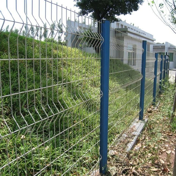 (三)三角折彎型防護網(wǎng)結構:用高強度冷拔低碳鋼絲焊接后在經(jīng)過液壓成型,用連接附件與鋼管支柱固定。特點:強度高、鋼性好、造型美觀、視野寬廣,安裝簡便,感覺明亮、輕松。