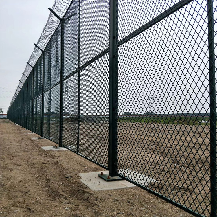 監獄隔離防護網網絲材質都是選用Q235碳素鋼,1、網格大小: 50mmx 150mm堅密格型網加三道折彎, 加固定框2、網片固定框: 20x20x 1.5mm國標方鋼管,增加一道垂直中稱3、網絲直徑: 5mm ,網片尺寸: 2000mm-2500mm (可根據實際可用空間臺理調整)。4、立柱規格: Y型柱直徑60mmx 60mmx2.5mm方鋼。5、 柱與網框連接方式:防盜螺絲貫旁式連接。6、 網片頂端安裝刀片刺繩:芯絲直徑2.5mm、刀長21mm ,刀寬15mm ,刀片剌繩直徑500mm-600mm。
