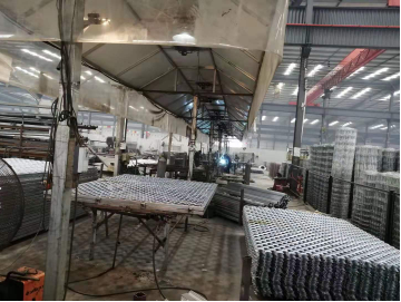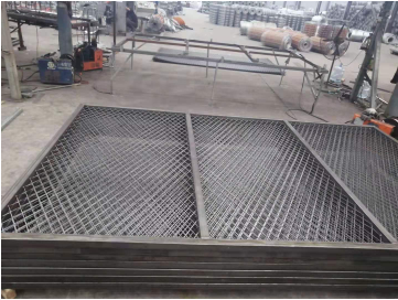 第二步需要加工外框,隔離網使用專用模具把對應外形尺寸固定好。連接邊耳也是在這一步加工的。這一步完成后,隔離網的整體形狀就出來。(同一 步驟焊接立柱,立柱邊框,立柱頂端的Y叉)