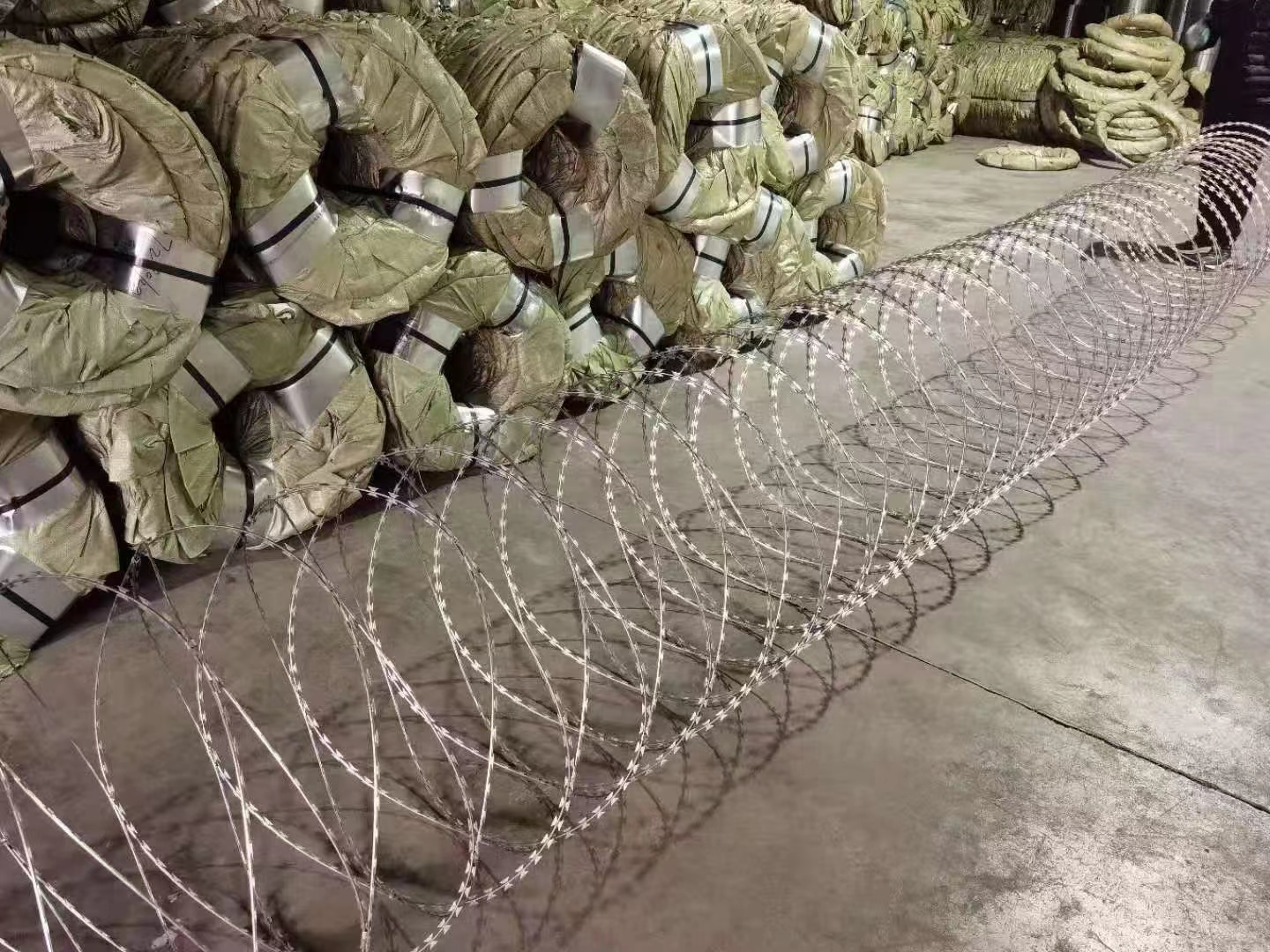 在拆開刺絲滾籠包裝的時候要非常注意,一定要做好防護措施,這里要說說刺絲滾籠的包裝方式, 一般我們是將成卷的刺絲滾籠用防水紙和編織袋雙層包裹,有時為了節省運輸空間會將很多卷包裝好的刺絲滾籠產品用壓縮機壓縮,