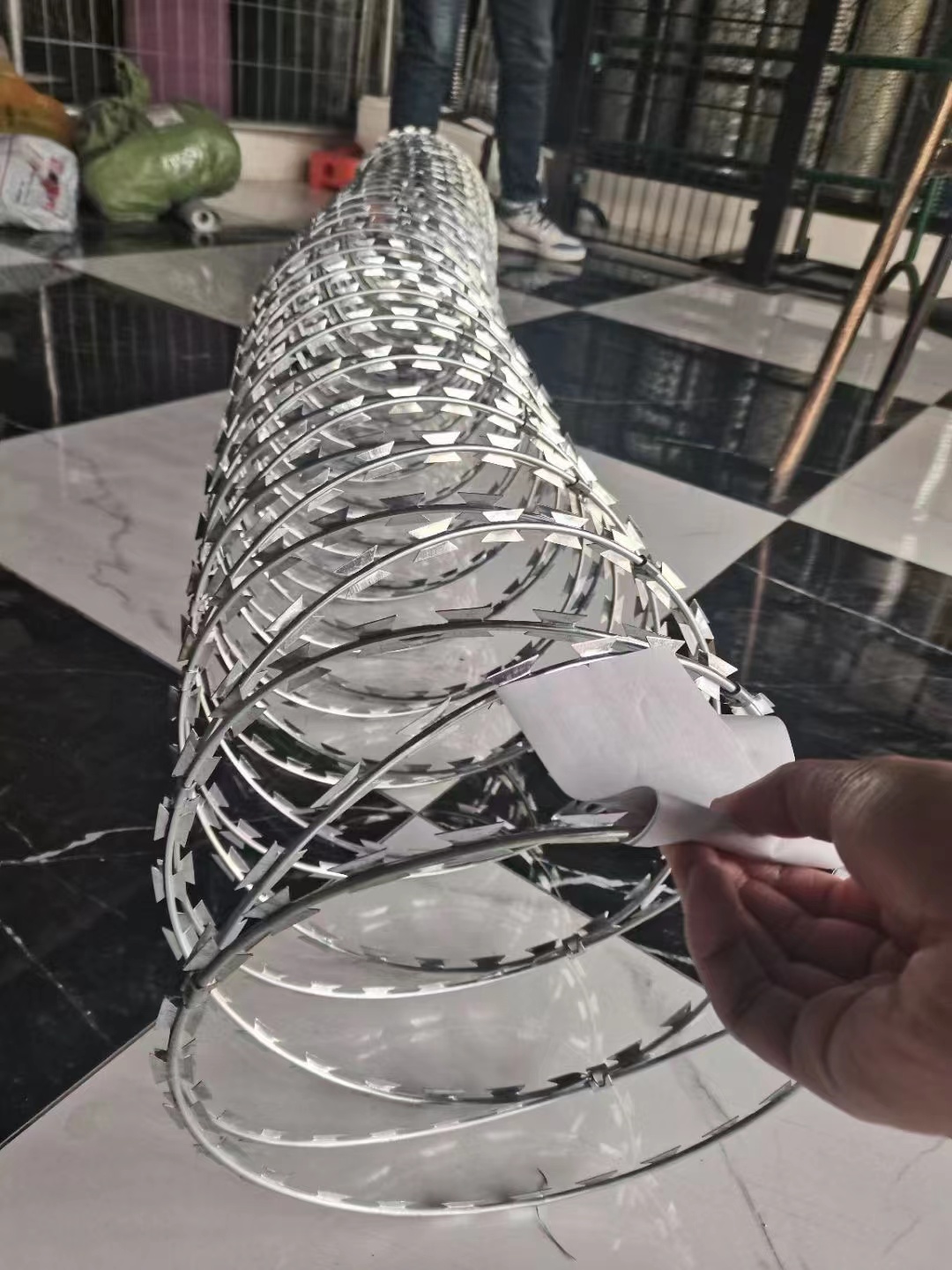 最后在拉開刺絲滾籠并固定的過程中最好一節一節的安裝 ,不要一次性全部拉開 ,否則容易回彈造成對另一端人員的受傷。固定時一定要固定牢固,因為刺絲滾籠有彈性,以免崩開劃傷安裝人員。