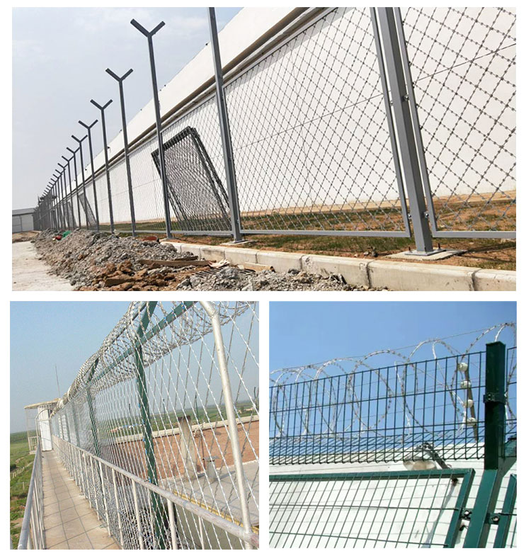 監(jiān)獄高墻防護網(wǎng)監(jiān)獄監(jiān)舍防護網(wǎng)監(jiān)獄放風(fēng)場圍網(wǎng),戒毒所看守所監(jiān)獄隔離網(wǎng)一般是由Y型立柱和加強型網(wǎng)片而組成,上面安裝50、60或者80公分的刀刺滾籠,安全防御級別很高, 被廣泛應(yīng)用于戒毒所、看守所、監(jiān)獄、軍事基地等高安全場所。