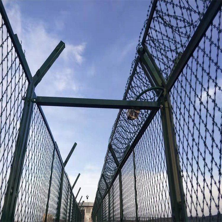 監(jiān)獄高墻隔離網(wǎng)也叫巡邏道隔離網(wǎng),是監(jiān)獄非常重要的安全防護(hù)設(shè)施,由鋼筋焊接成網(wǎng)加蛇腹型刀片刺網(wǎng)組合而成,監(jiān)獄高墻隔離網(wǎng)具有結(jié)構(gòu)新穎、堅(jiān)固緊密、網(wǎng)面平整、網(wǎng)孔均勻、刀鋒銳利、防攀爬、坑腐蝕等特點(diǎn)。監(jiān)獄高墻隔離網(wǎng)是建在監(jiān)獄的內(nèi)外墻上,網(wǎng)墻內(nèi)側(cè)或者頂部加裝蛇腹型刀刺網(wǎng),形成一道高不可攀、難以逾越的隔離網(wǎng)屏障,配合高壓打擊電網(wǎng)和監(jiān)控報(bào)警設(shè)備等保障監(jiān)獄安全萬(wàn)無(wú)一失。