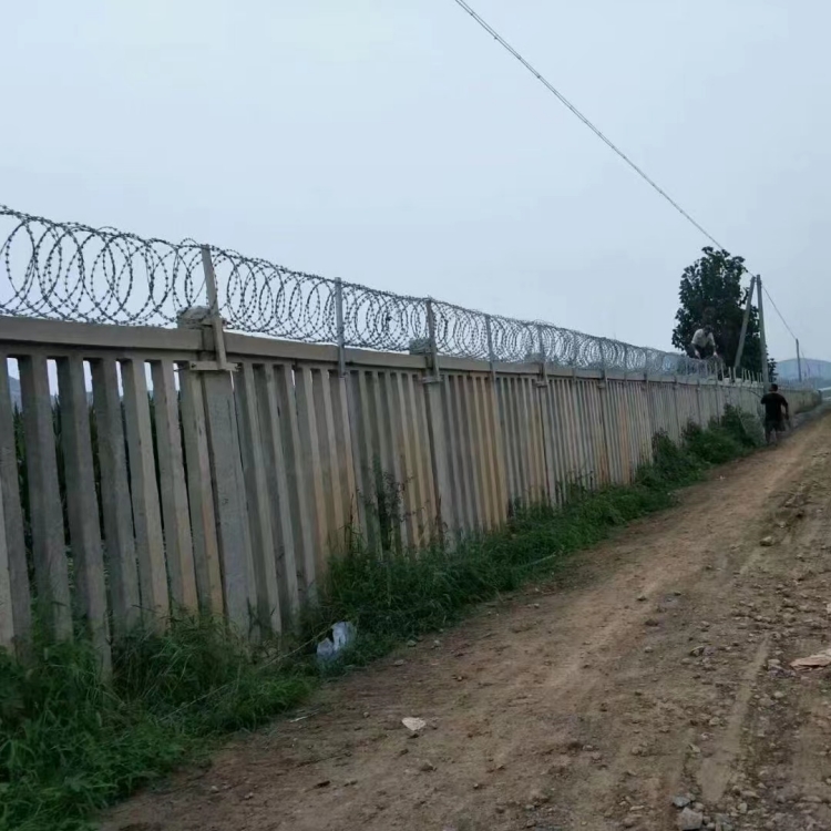 通常來說高鐵兩側(cè)應(yīng)用刺絲滾籠的話會(huì)用到水泥制圍欄而刀片刺繩則是安裝到了圍欄上面防止翻越的。在設(shè)計(jì)上面不同的地形設(shè)計(jì)成了不一樣的樣式,