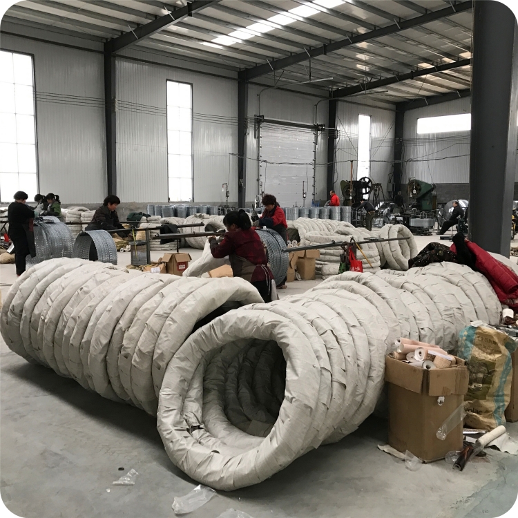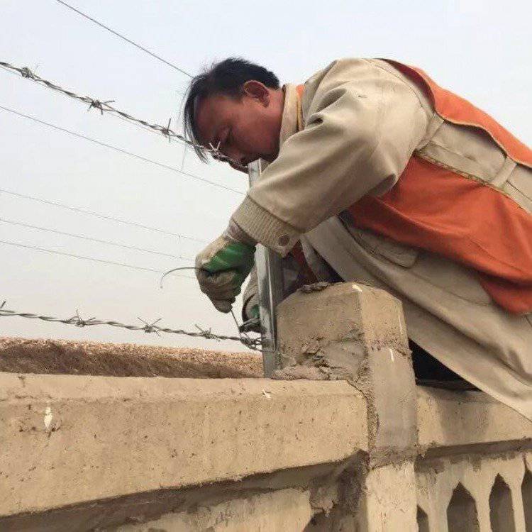 針對(duì)刺絲滾籠和雙股刺繩對(duì)于上鋅量是明顯的要求了,此外包括一些安裝長度和直徑等等方面要求也是比較多的。張開后形成蛇腹網(wǎng)狀,閉合后刀片刺繩圈徑為50cm,張開后每交叉圈安裝間距20cm,直徑不小于45cm,刀刺寬度22mm,兩刃垂直間距15cm,刀刺縱向間距34mm,芯絲直徑為2.5mm,刀片采用厚度0.5mm的Q195鋼板沖切制作,芯絲由HPB300直徑6.5m高線鋼絲冷拔加工。這樣名列出嚴(yán)格的技術(shù)要求也是為了保障安全和使用壽命。這里面我們要指出的一點(diǎn)就是小型的支架是為加密而設(shè)計(jì)的,而最大的刺繩支架是在階梯交接的地方進(jìn)行安裝和固定的。安裝工序是肯定是先固定支架了,一般都有專門的u型螺栓抱咂在水泥制的圍欄上面只需要固定.