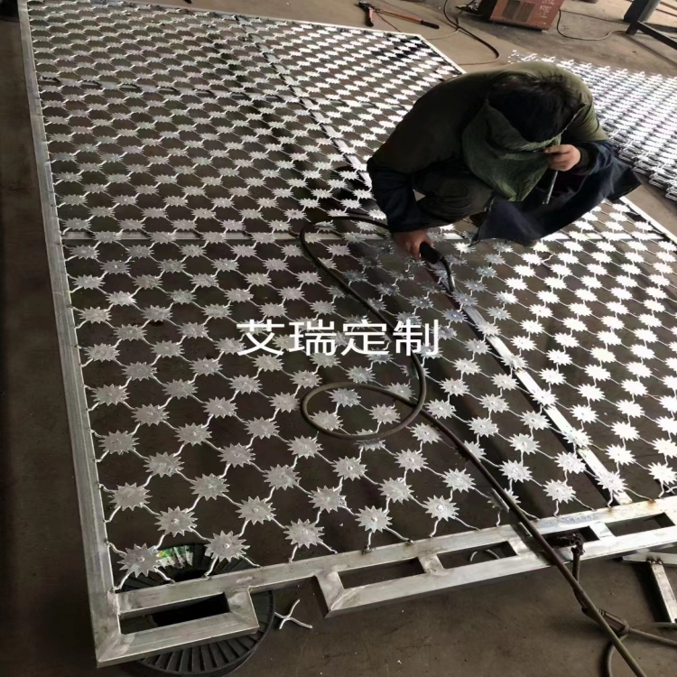 梅花刺網(wǎng)又稱高安全防護網(wǎng)、監(jiān)獄防護網(wǎng),是用氬弧焊將梅花形刺片焊接在美格網(wǎng)的節(jié)點上,形成刺形保護,有效的阻止罪犯脫逃,為此該網(wǎng)開始在監(jiān)獄或看守所大量使用。