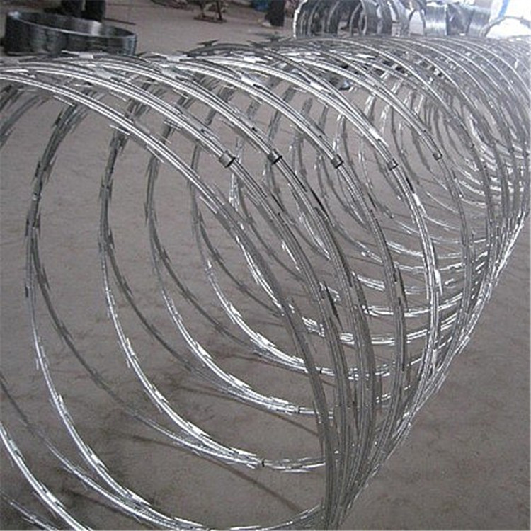 為了加強(qiáng)監(jiān)獄鋼網(wǎng)墻的高安全性,常有客戶要求鋼網(wǎng)墻的上面在刺網(wǎng)來加強(qiáng)安全性能。刀刺網(wǎng)具有美觀、經(jīng)濟(jì)實(shí)用、防阻效果好、施工便利等優(yōu)異特點(diǎn),刀刺網(wǎng)常見的表面處理有電鍍鋅,熱鍍鋅和噴塑處理。目前,刀片剌繩已被廣泛應(yīng)用于許多國家的工礦企業(yè)、園林公寓、邊防哨所、軍事領(lǐng)域、監(jiān)獄、看守所、政府建筑物和其他國家的安全設(shè)施。