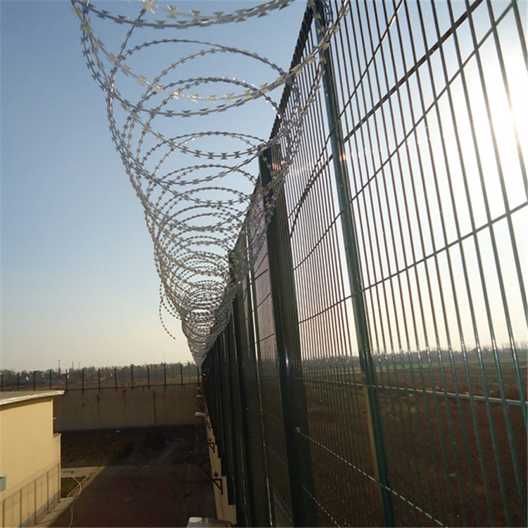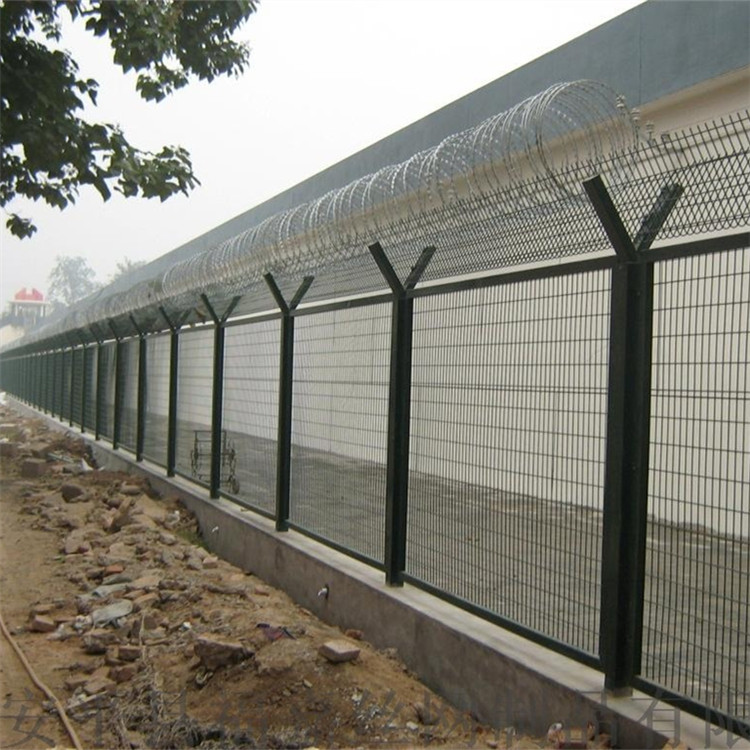 監(jiān)獄鋼網(wǎng)墻又稱作“Y型安全防御護網(wǎng)”,是由V型支架立柱,加強型焊接片網(wǎng),安全防盜連接件和熱鍍鋅刀片刺籠組成強度和安全防御性級別很高。近年來,被廣泛應(yīng)用在監(jiān)獄,軍事基地等高安全場所。在監(jiān)獄鋼網(wǎng)墻頂部加裝刀片剌絲、刀片剌繩后又很好的增強了安全防護性能。