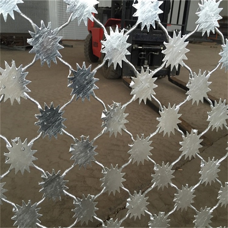 梅花刺片隔離網的刀刺片直徑規格,這里說的刀刺網片其實就是隔旁網上面那一朵朵“花"因為形狀酷似梅花所有叫梅花隔離