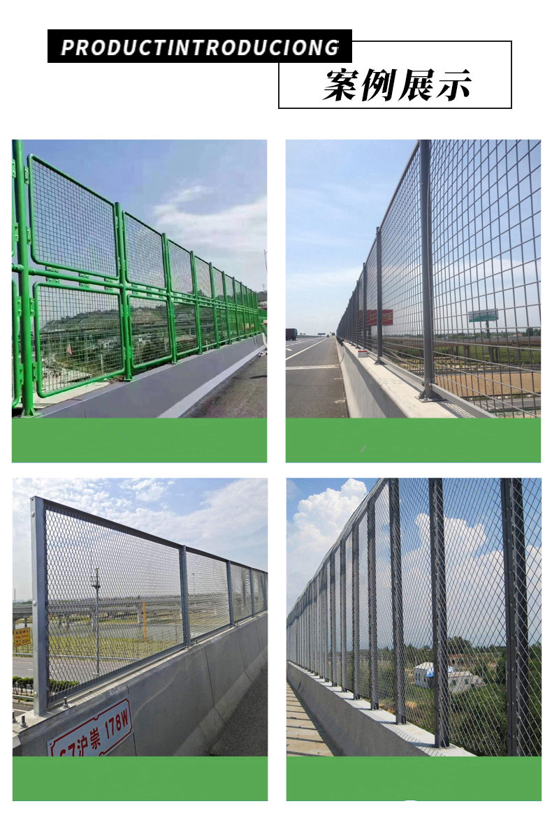 高速公路互通橋防拋防落網(wǎng)橋梁防落物網(wǎng)優(yōu)點(diǎn): 1. 網(wǎng)身輕巧、造型新穎、美觀耐用; 2. 特別適合于橋梁防拋網(wǎng); 3. 高效浸塑十年防銹; 4. 拆裝方便,重復(fù)使用性好,可根據(jù)需要對(duì)圍網(wǎng)重新布局; 5. 環(huán)保產(chǎn)品,最終可回收利用。高速公路互通橋防拋防落網(wǎng)橋梁防落物網(wǎng)外型新穎、橫向通透、美觀輕巧、 獨(dú)創(chuàng)風(fēng)格、防眩效果特佳,避免夜間行車受對(duì)向車輛射出強(qiáng)光而影響視覺所造成的交通事故,保證了道路暢通和經(jīng)濟(jì)效益。加熱浸鋅表面處理,防銹功能超過15年。本產(chǎn)品所采用的桃型柱、雙圈、波浪、雙邊護(hù)欄網(wǎng)等系列的專業(yè)產(chǎn)品具有網(wǎng)身輕巧、造型新穎、美觀、