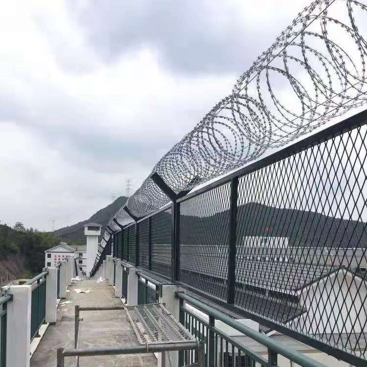 形、長(zhǎng)方形,也可以焊接成菱形,也可以直接采用刀片刺繩焊接網(wǎng)或鋼板網(wǎng)材料的網(wǎng)片,還有造價(jià)較高的梅花刺片和358密紋網(wǎng),然后在網(wǎng)片的基礎(chǔ)上四周焊接邊框,防腐進(jìn)行pvc浸塑或噴塑處理。頂端安裝刀片刺繩,刀片剌繩擁有鋒利的刀片,手不能握,可以阻止非法分子的攀爬,從而使鋼網(wǎng)墻從外形上邊可以起到震撼的作用。